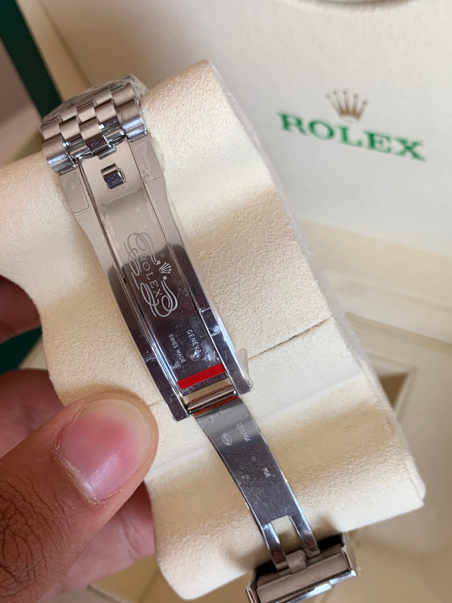 Fabricado en Los mejores Materiales del Mundo, Caja y pulera y cierre Hechos en Acero 904L de Maxima calidad suiza, con el mismo tacto que el modelo original.