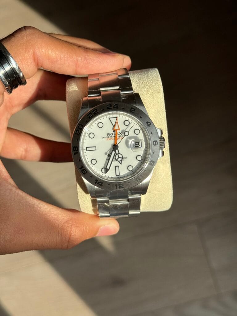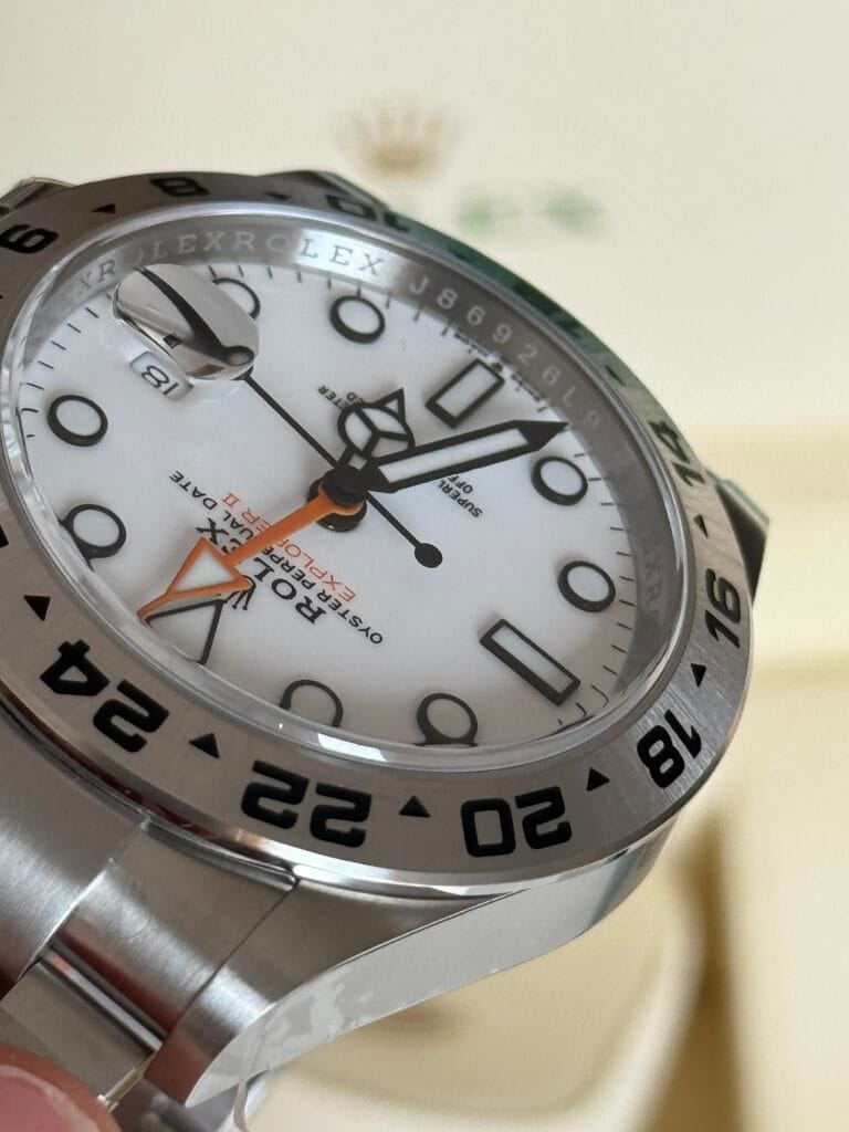 Rolex explorer 2 con referencia 226570 “polar” en su versión super clon 1:1 con su maquinaria 3285 con funcionalidad GMT como la versión original.