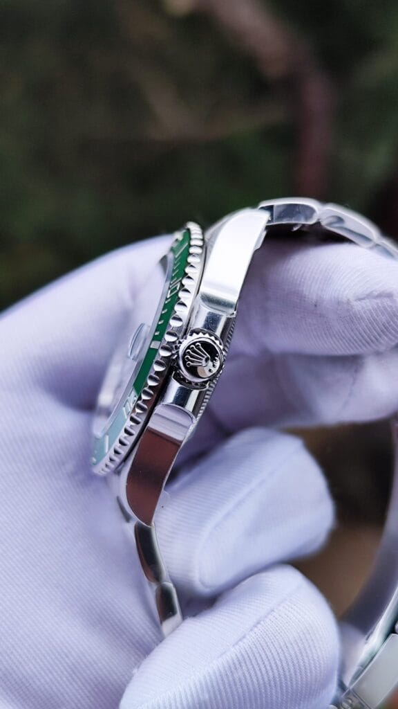 Fabricado en Acero 904L tanto la caja como la pulsera, acero de Máxima calidad. El Bisel instalado es de ceramica de alta calidad Con tono verde identico al modelo original, las Graduaciones del bisel son grabadas con laser y pintadas con una fina capa de platino. El mecanismo super clone es el 3235 de Maxima calidad, con funcionalidad de fecha y hora, minutos y segundos, con una Reserva de marcha de 72H.